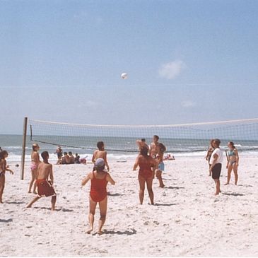 Family and kids alike enjoy daily pick up volleyball games right in the sand with this Florida Vacation rental